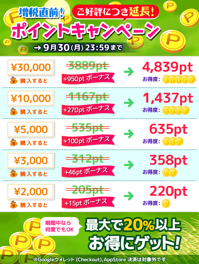 男性:延長!ポイントキャンペーン!最大+950pt!