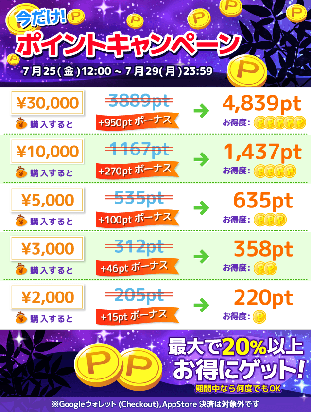 男性:最大+950ptも!ポイントキャンペーン!
